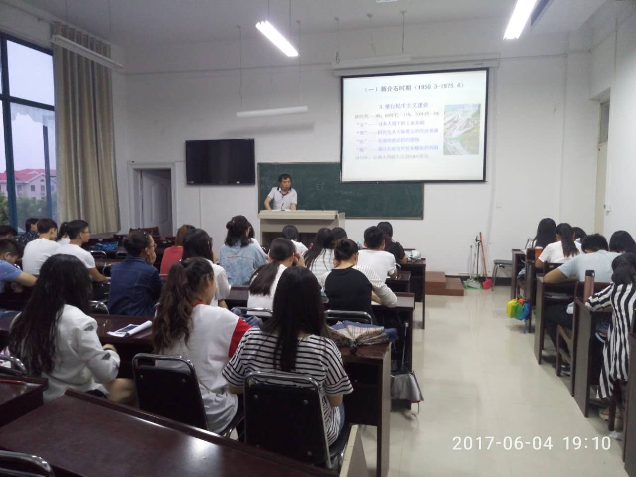 6月4日晚,龚志宏教授应人文学院周末论坛邀请,在平原路校区实验组团楼125教室为该院学生作以“台湾政局的回顾与两岸关系的展望”为主题的专题讲座。龚志宏教授回顾了台湾政局的演变过程,认为民进党上台后,两岸关系出现一些波折,但两岸交流合作已是大势所趋,经济、贸易关系还会继续维持、加强。强调国家要统一,民族要振兴,是任何力量也阻挡不了的历史大趋势,两岸统一是中华民族走向伟大复兴的历史必然,只要海内外中华儿女紧密团结、共同奋斗,祖国的完全统一就一定能够实现!