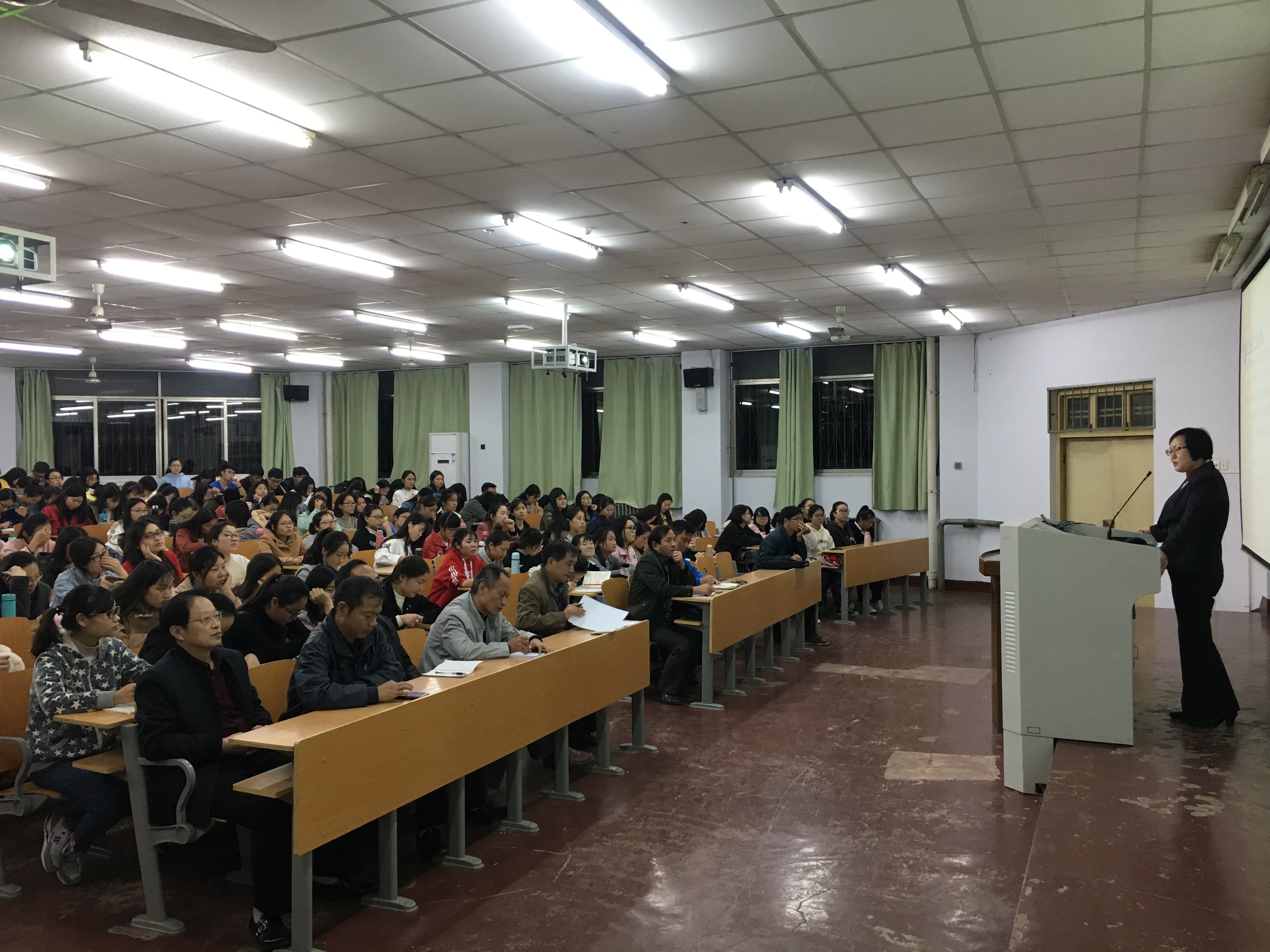 为推进十九大精神进教材、进课堂、进学生头脑工作,学习借鉴省外高校 “形势与政策”课改革创新的成功经验,10月29日晚,马克思主义学院邀请教育部马克思主义理论专业教学指导委员会委员、山东大学马克思主义学院博士生导师徐艳玲教授在文化路校区1号教学楼308教室为我校学生作“形势与政策”专题讲座,题目是《十九大重大理论创新学习体会》。马克思主义学院部分教师,人文学院2016级汉语言文学、文案专业的学生参加了本次专题讲座。