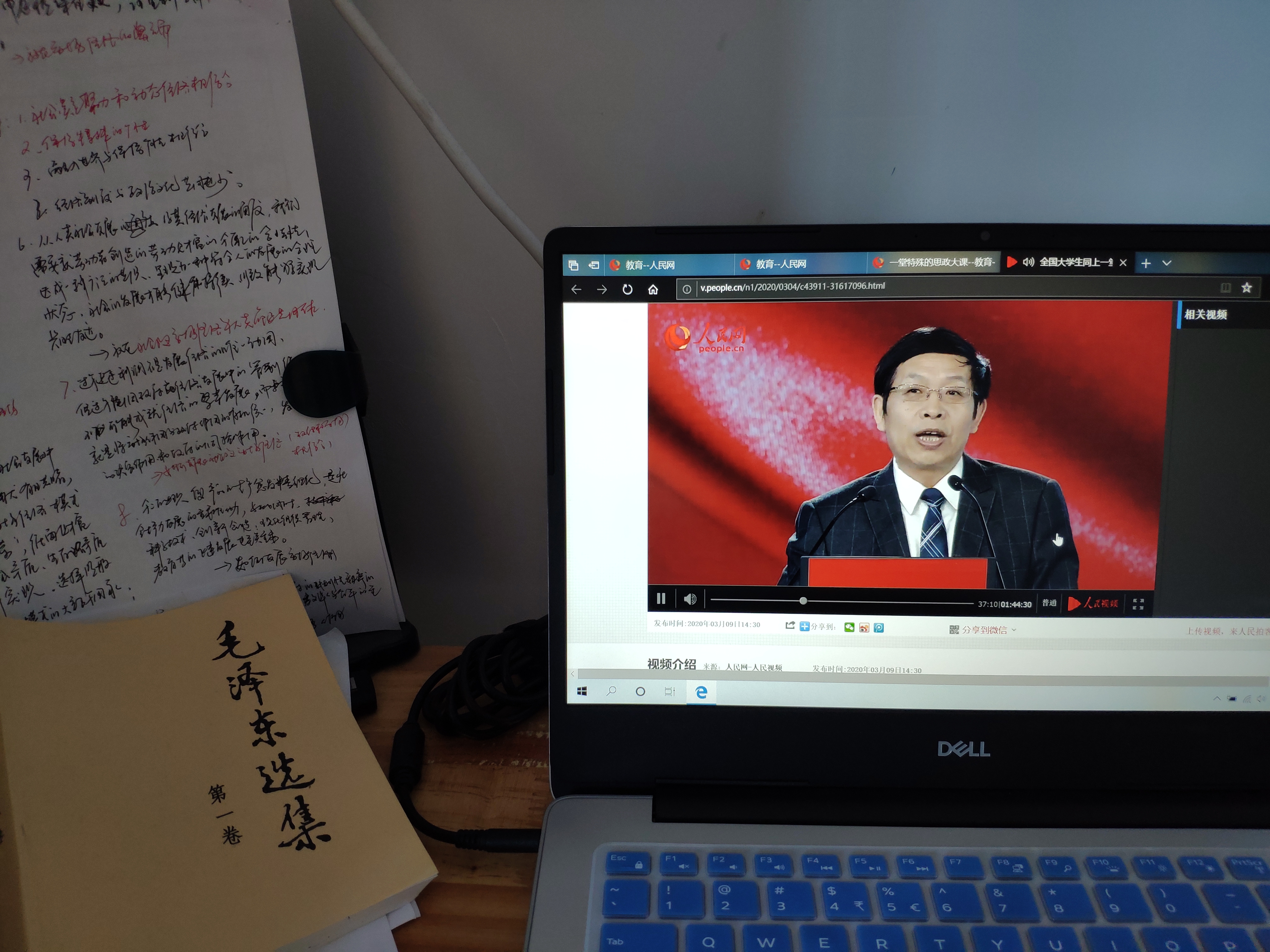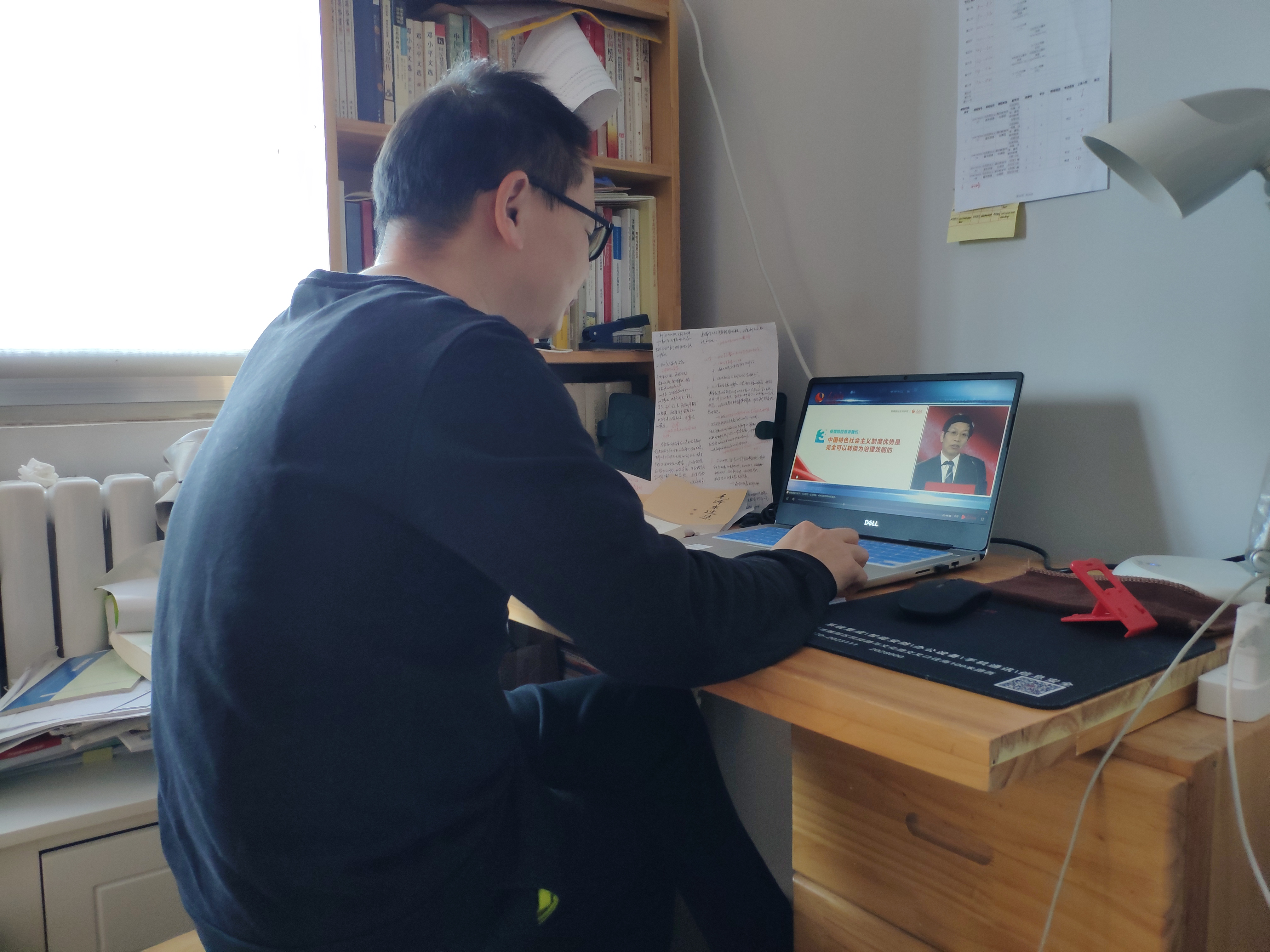 3月9日下午,教育部社科司、人民网通过网络直播的方式联合举办“全国大学生同上一堂疫情防控思政大课”,清华大学艾四林、中国人民大学秦宣、北京师范大学王炳林、中央财经大学冯秀军四位教授联袂登台授课。马克思主义学院组织当天下午没有教学任务的教师采取多种形式收看直播。