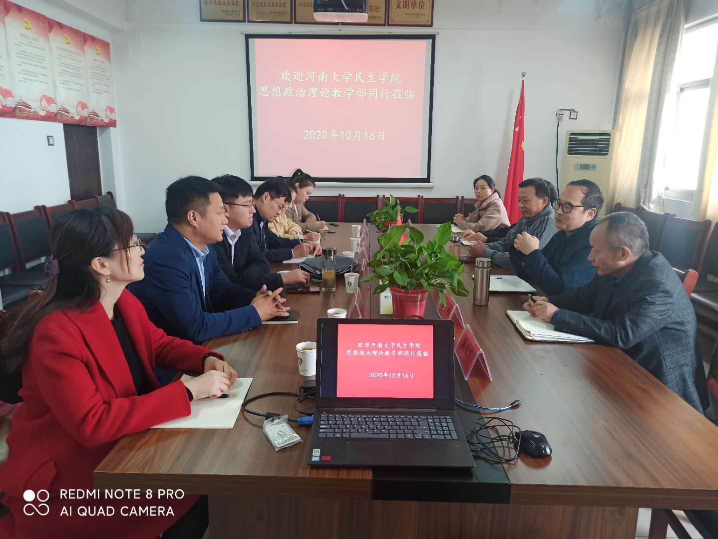 10月16日下午,河南大学民生学院人文学院党委副书记惠鑫,人文学院副院长、思想政治理论教学部主任张磊,思想政治理论教学部副主任吴亚强,教务办主任陈涵均,教研室主任李婵娟、李静一行6人来我院考察交流。交流座谈会在马克思主义学院会议室举行,李会龙书记、李伟副院长、徐洪岭副院长、办公室主任、教务办主任和部分教师参加了座谈会。