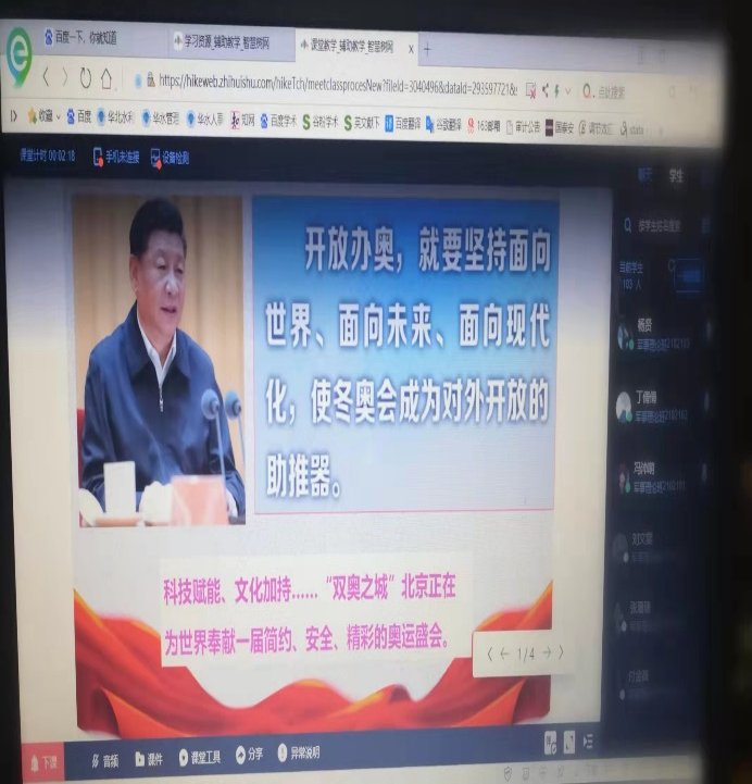 王令云老师以习近平总书记关于“开放办奥,就要坚持面向世界、面向未来、面向现代化,使冬奥会成为对外开放的助推器”的重要论述为视角,讲述了北京冬奥会以体育的力量将五洲四海的人们团结在五环旗下,不仅搭建了冰雪英雄竞技的顶级舞台,也架起了中华文明与世界各国文明交流互鉴的特殊桥梁,展现出一幕幕各美其美、和合共生的现代文明融合场景。北京冬奥会向世界发出命运与共、和衷共济的热切呼唤,充分彰显了一个负责任大国致力于推动构建人类命运共同体的担当,也为各国人民战胜困难、实现梦想注入了新的信心和力量。