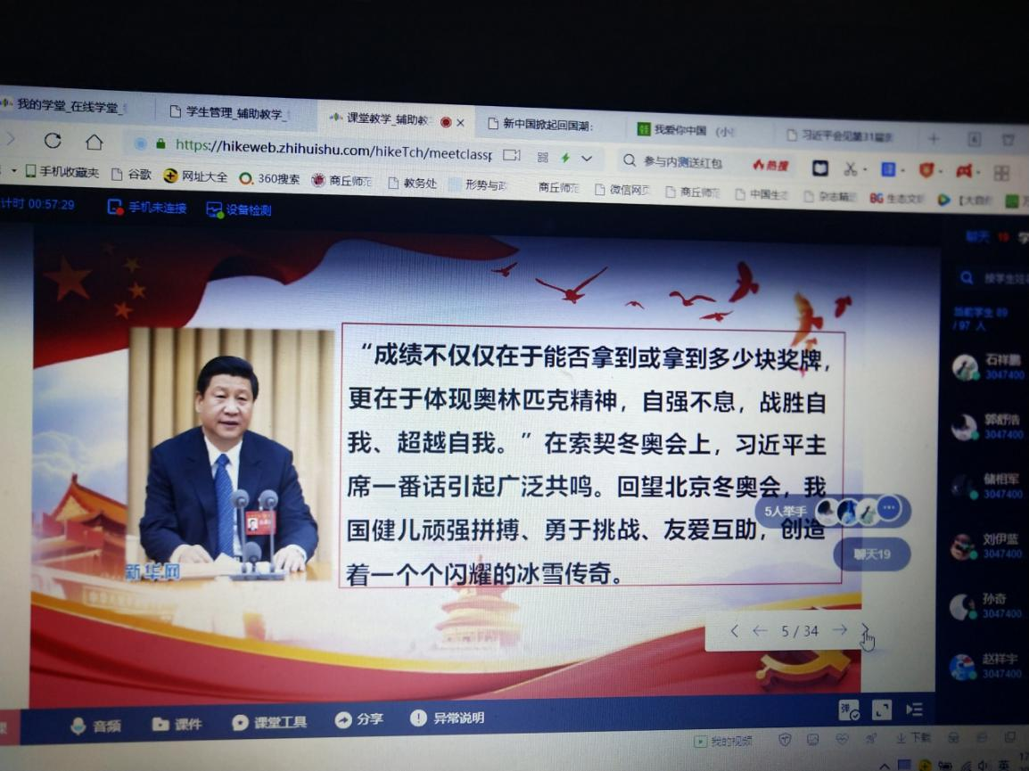 新学期开学第一周,马克思主义学院教师根据《马克思主义学院2022年春季开学思政第一课实施方案》,以深入学习党的十九届六中全会精神、习近平总书记关于体育的重要论述、中国共产党河南省第十一次代表大会精神为主题,结合思政课线上教学,上好2022年春季学期开学思政第一课。