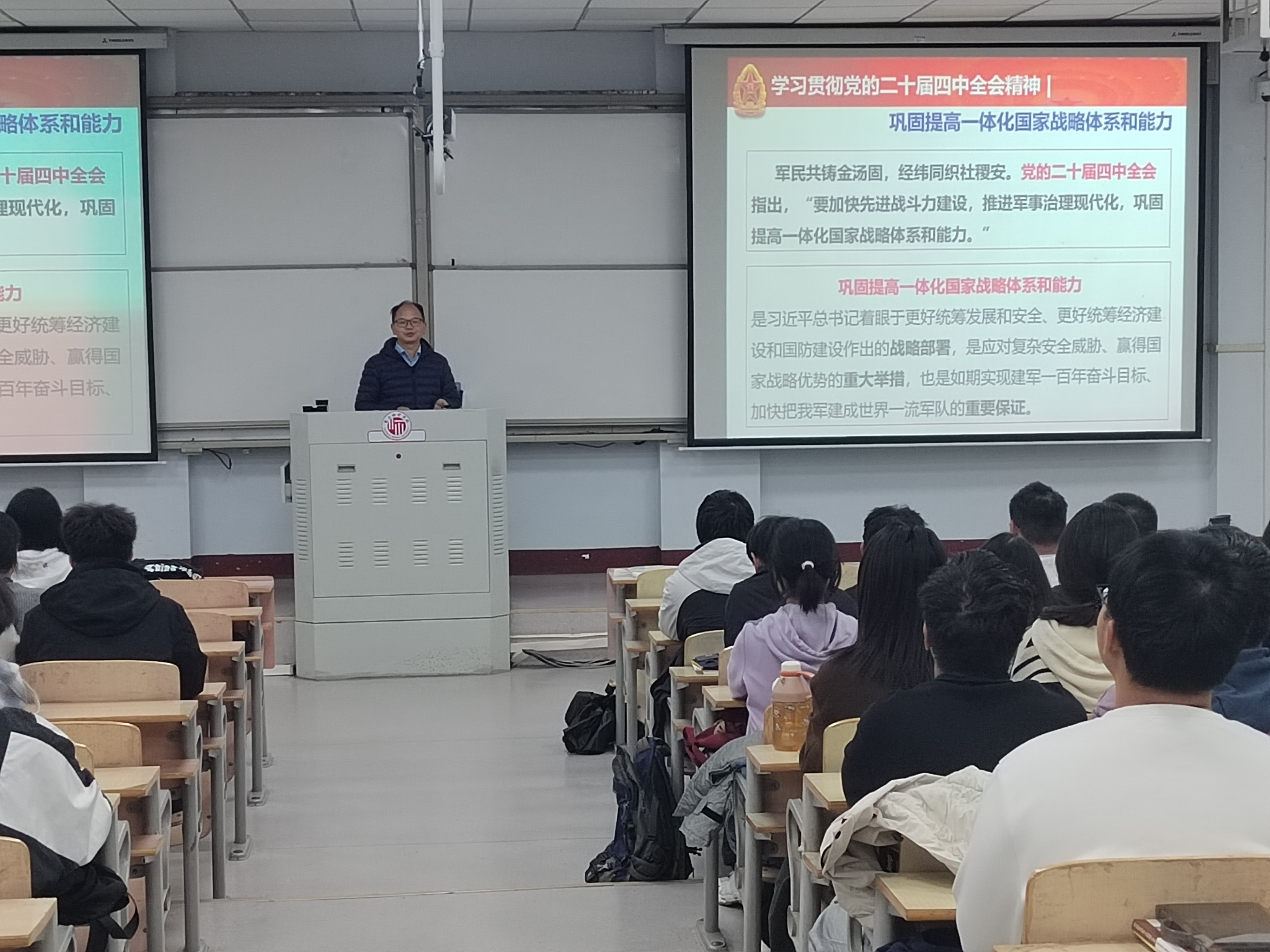 进入11月份以来,马克思主义学院军事理论教研室教师以高度的政治责任感、使命感深入学习贯彻党的二十届四中全会精神,精心设计课堂教学内容,积极推动全会精神进专题、进课堂、进头脑,切实以全会精神涵育时代新人,厚植青年学生使命担当。