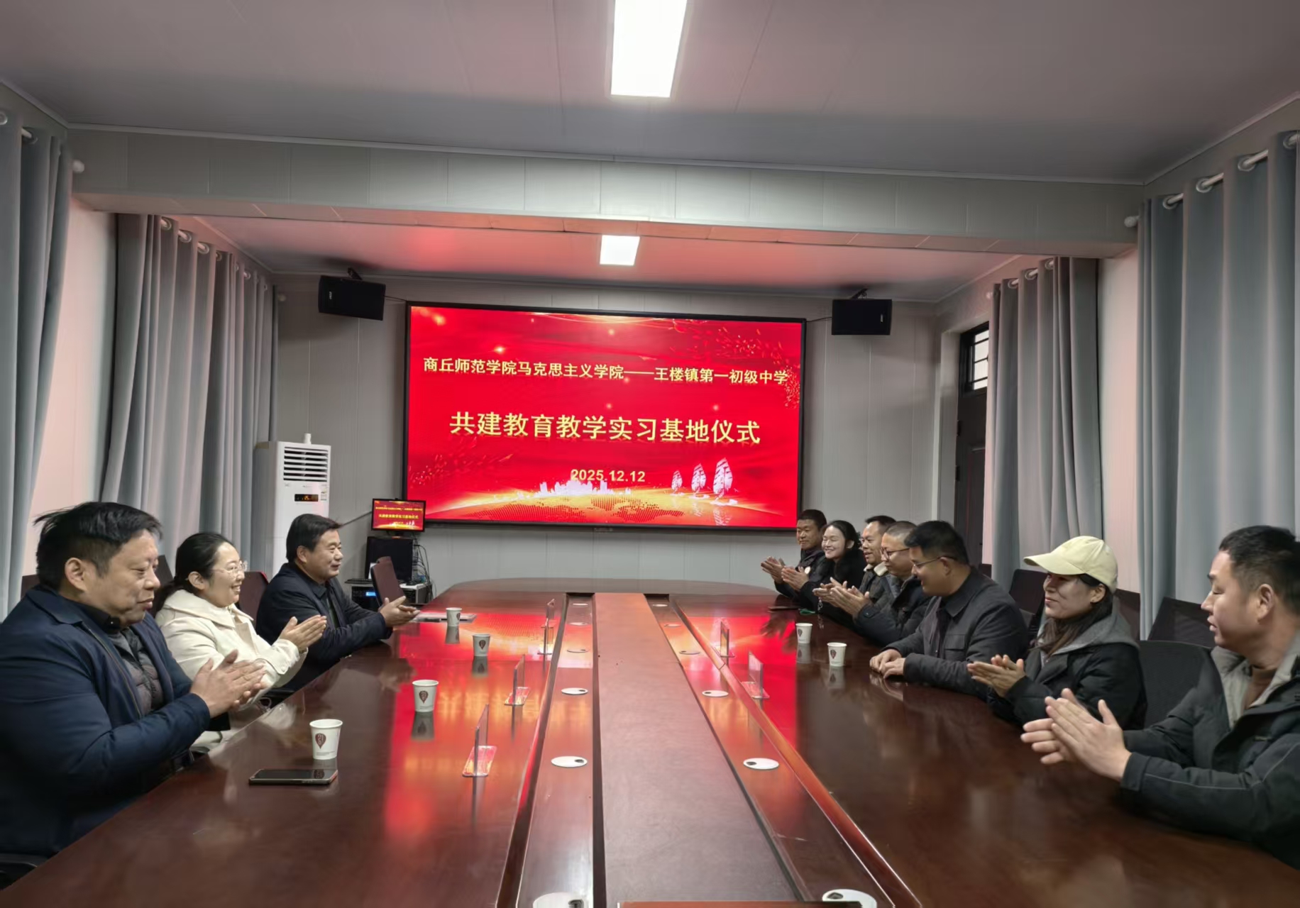 12月12日,马克思主义学院在梁园区王楼镇第一中学正式挂牌成立教育教学实践基地。马克思主义学院院长赵世锋、副院长丁亚仙以及教师代表薛明珠、陈淑鹏参加了此次活动。共建教育教学实践基地,搭建高校与中学的协同育人平台,推动大中小学思政课一体化建设,引导青年大学生在实践教学中深化对思想政治教育专业的认识,增强努力成为一名优秀思想政治教育工作者的使命担当。