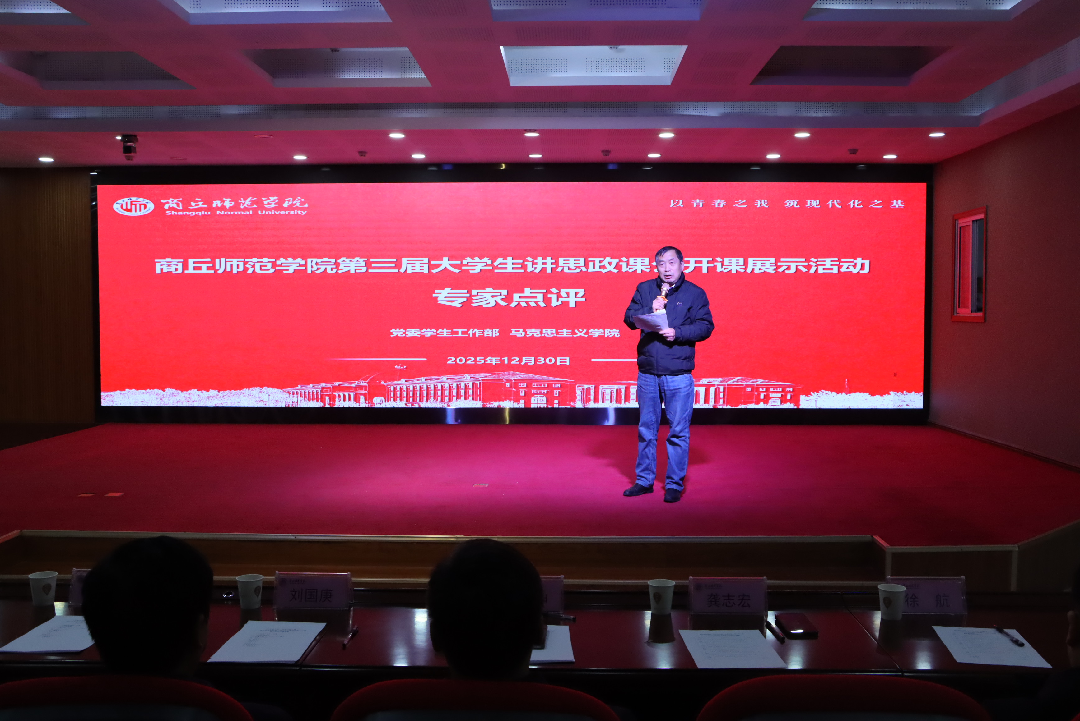 12月30日,由学校党委学生工作部和马克思主义学院联合举办的“以青春之我,筑现代化之基”——商丘师范学院第三届大学生讲思政课公开课展示活动决赛在三商楼145演播厅成功举办。校党委副书记刘国庚、副校长王晓征出席活动。