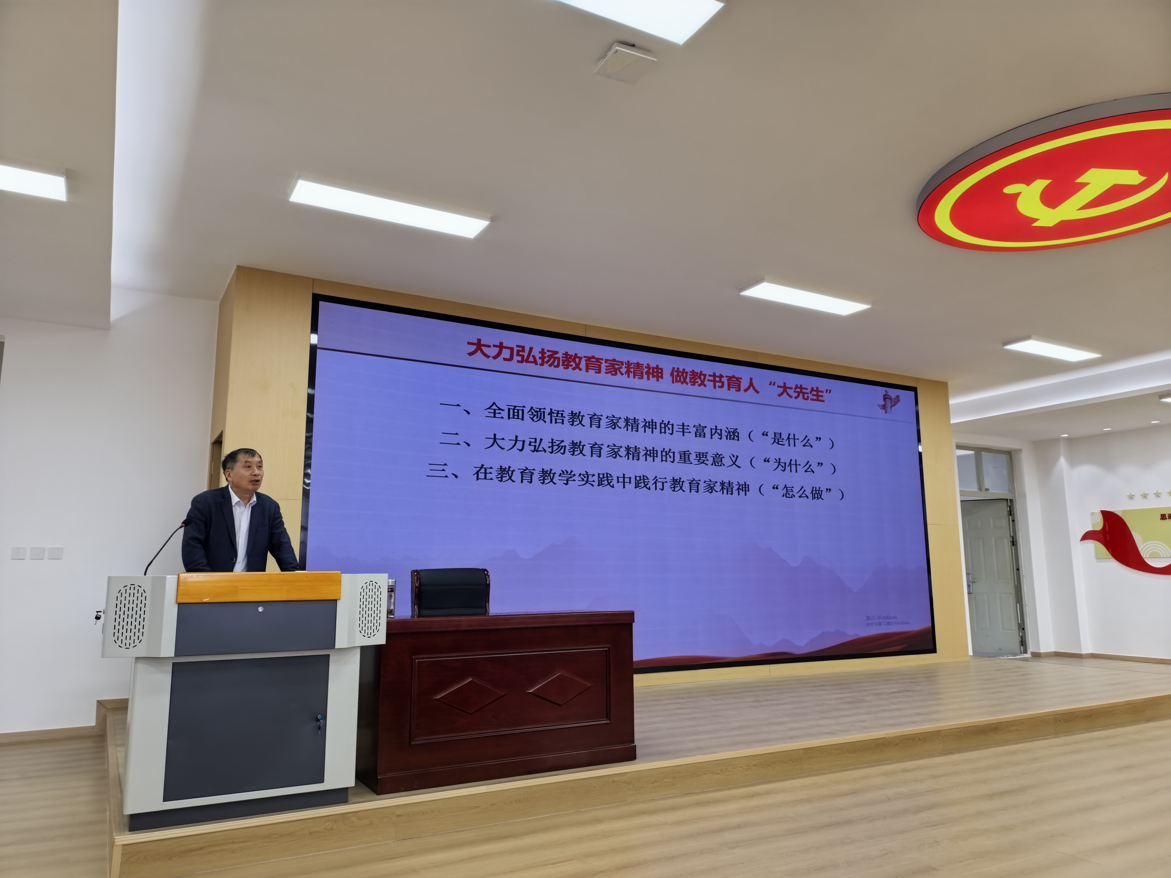 马克思主义学院龚志宏教授做《大力弘扬教育家精神做教书育人“大先生”》专题报告。他从教育家精神的科学内涵、重要意义和实践要求三方面全方位梳理阐释了教育家精神对于新时代思政课教师立身立教的核心价值,强调思政课教师作为铸魂育人的关键力量,必须将教育家精神内化于心、外化于行,自觉对标“大先生”标准,坚定理想信念、涵养道德情操、扎实学识功底、心怀仁爱之心,在日常教学科研中守好思政讲台、当好引路人。