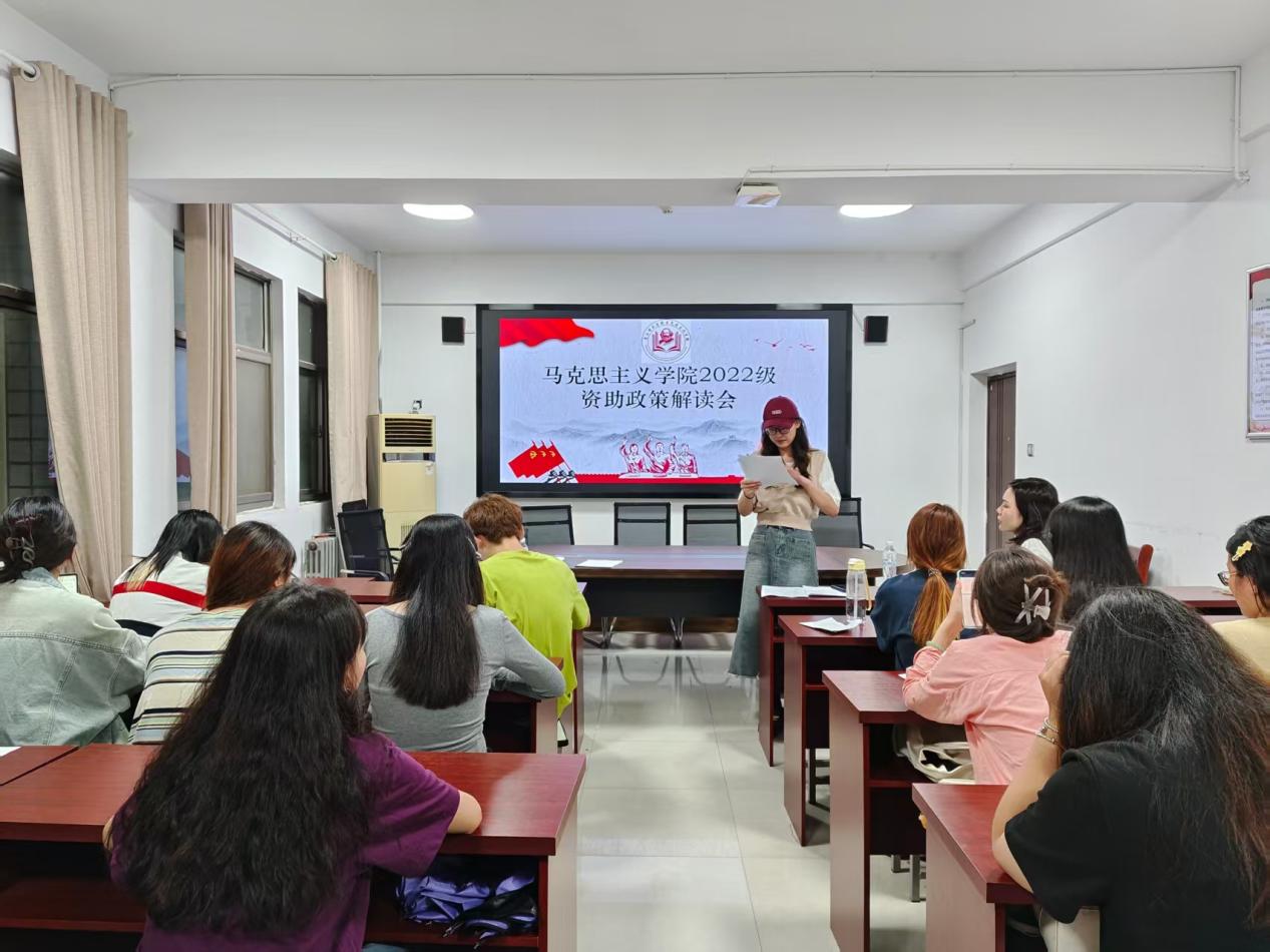 为切实做好学生资助工作,把资助政策精准传递到每一位学生心中,近日,马克思主义学院于应天楼817会议室开展春季高校资助政策宣讲活动。学院资助专员曹潇戈老师主讲,2022级全体学生及家庭经济困难学生代表参与此次活动。