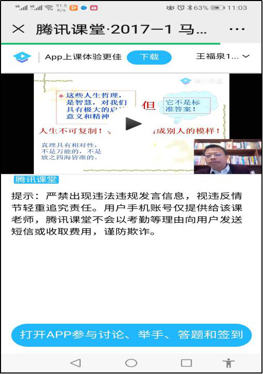 4月7日上午10:10-11:00,马克思主义学院康新亚老师采用学习通+腾讯课堂模式进行了《马克思主义基本原理概论》课程教学范式改革在线授课公开课,马克思主义学院当节次没有教学任务的教师参加了教学观摩活动。