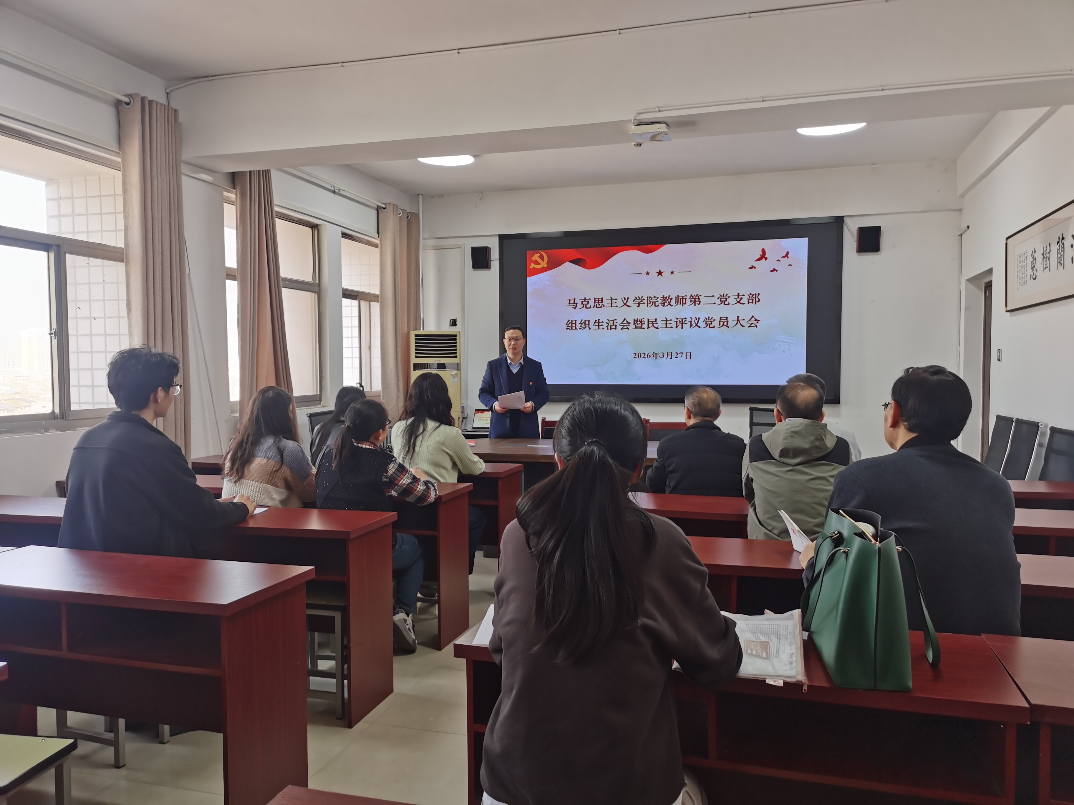 为学习贯彻落实习近平新时代中国特色社会主义思想和党的二十届四中全会会议精神,根据《关于召开2025年度基层党组织组织生活会和开展民主评议党员的通知》(商师党组〔2026—3〕部署要求,马克思主义学院教师第二党支部于3月27日下午在应天楼817会议室召开了党员大会、组织生活会以及民主评议党员大会。大会由支部书记孙国栋同志主持。